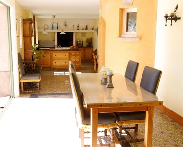La terrasse principale est équipée d’un store pour les fortes chaleurs ou la fraîcheur du soir.