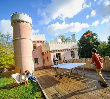 Le coin jeux avec table de ping-pong pour des parties en famille ou entre amis.